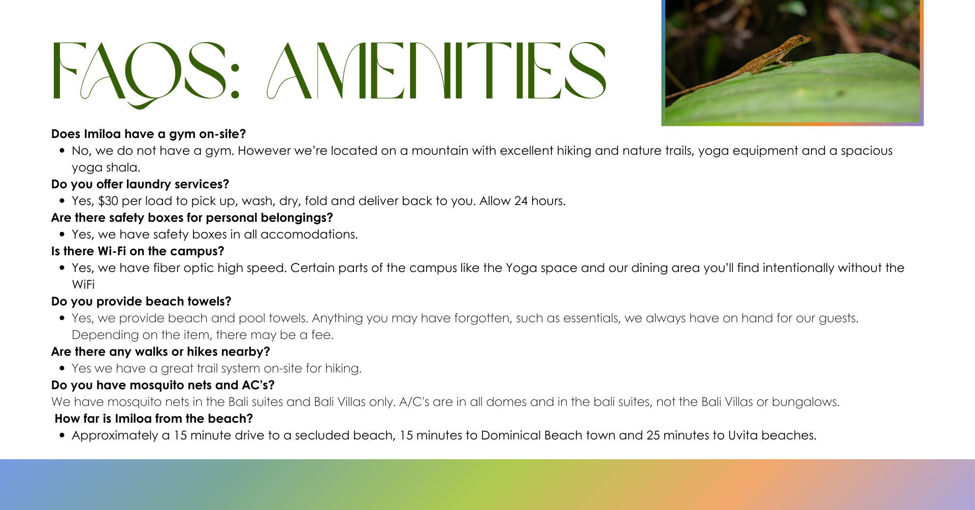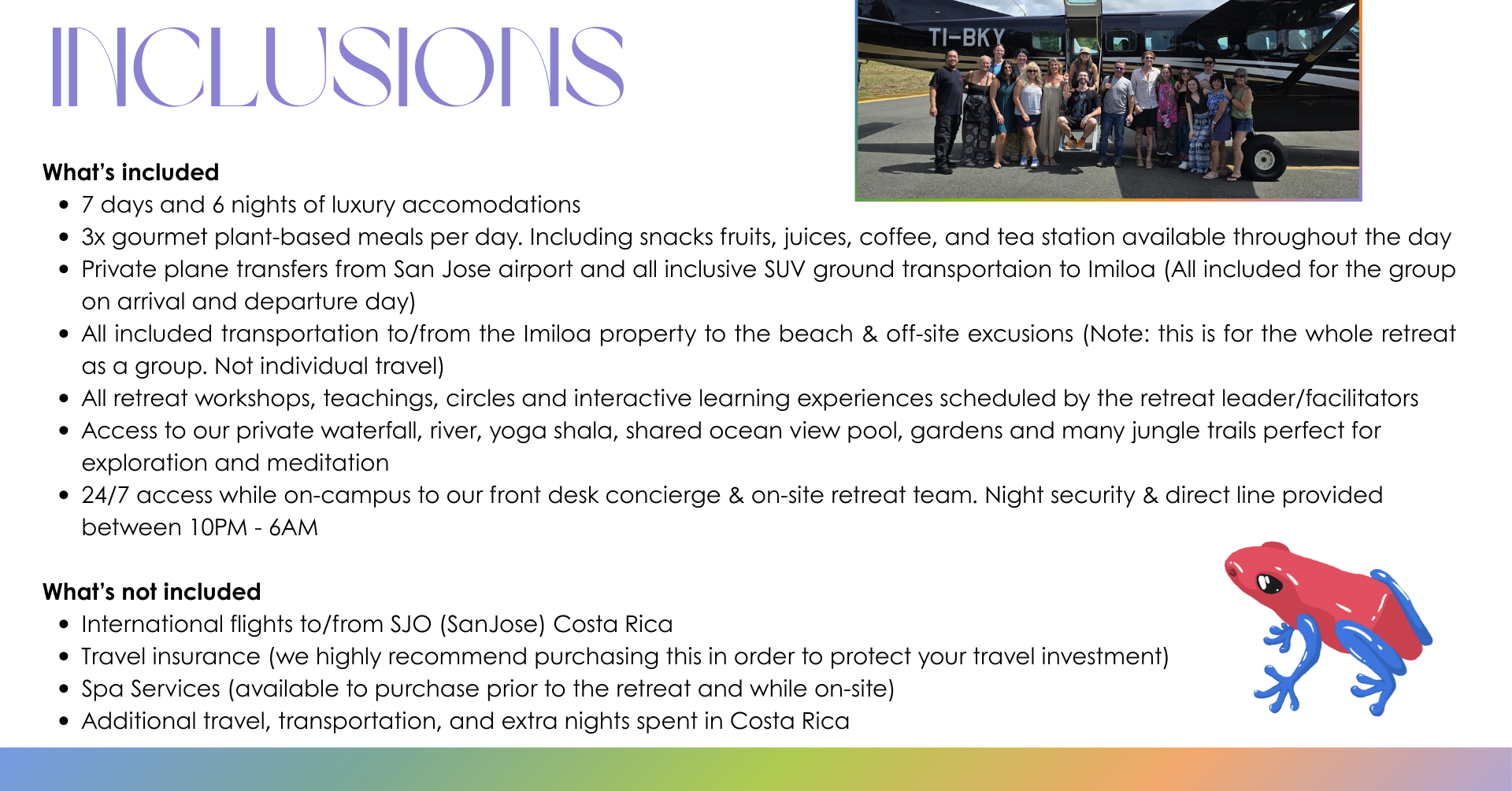 For travel insurance options feel free to reach out to Kiki Keating